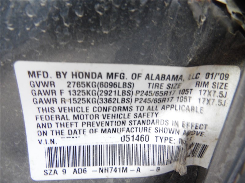 2009 Honda Pilot Touring Gray 3.5L AT 4WD #A226212009 Honda Pilot Touring Gray 3.5L AT 4WD #A22621