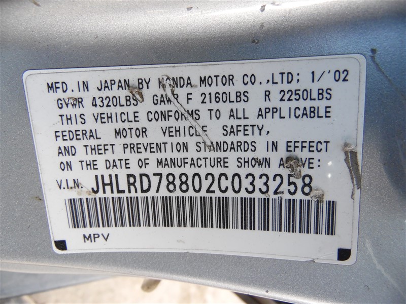 2002 Honda CR-V EX Silver 2.4L AT 4WD #A248782002 Honda CR-V EX Silver 2.4L AT 4WD #A24878