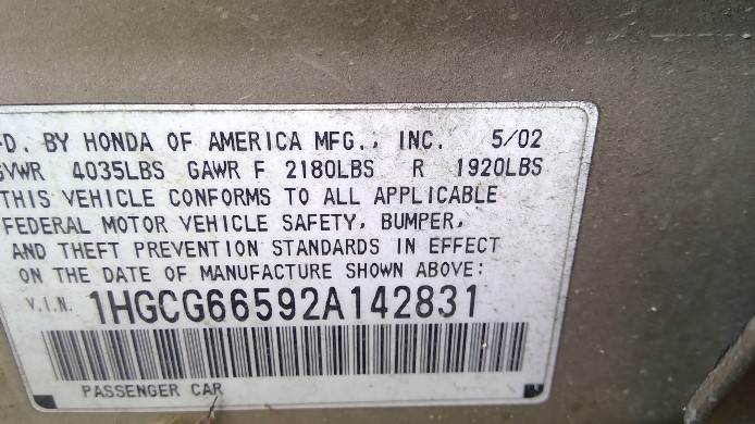 2002 ACCORD GOLD LX 2.3L VTEC AT.   A240352002 ACCORD GOLD LX 2.3L VTEC AT.   A24035