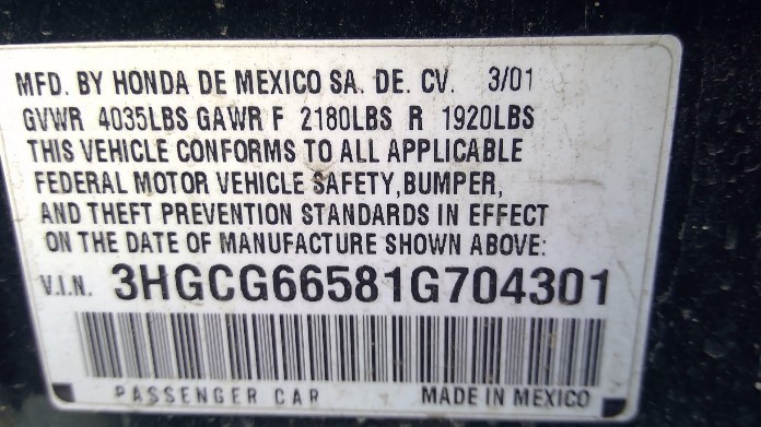 2001 ACCORD GREEN LX 2.3L VTEC  A240322001 ACCORD GREEN LX 2.3L VTEC  A24032