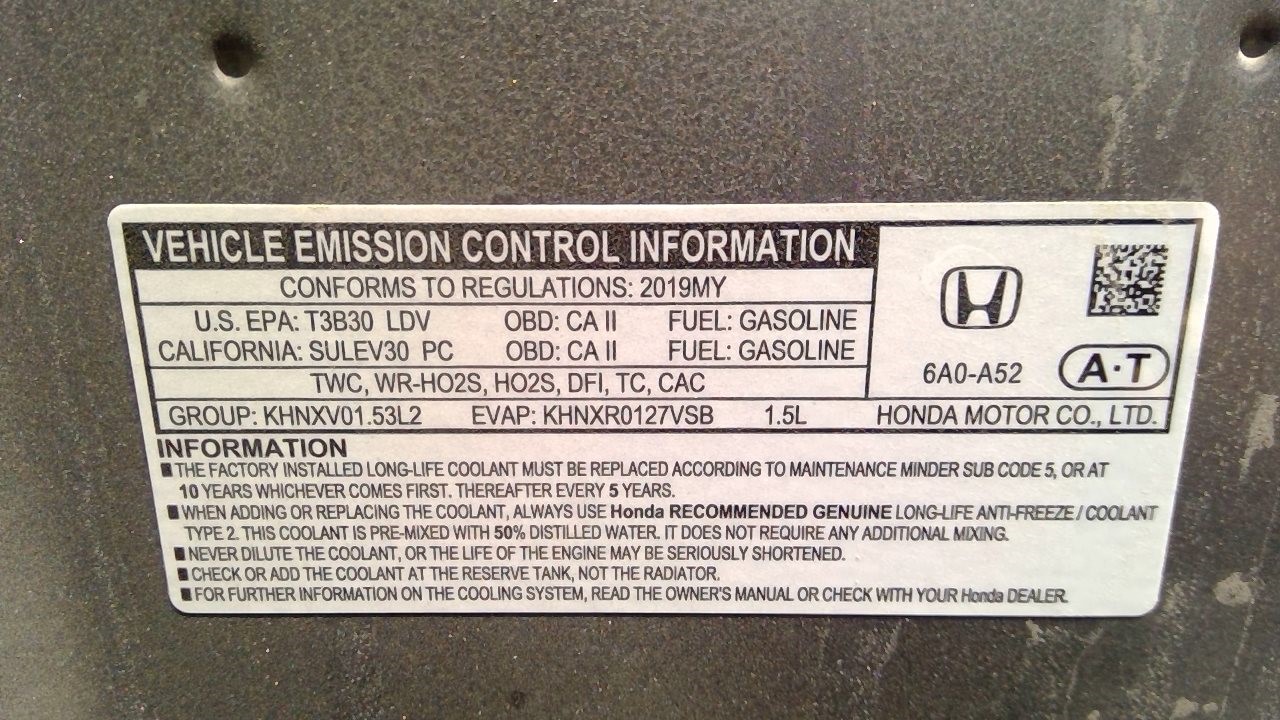 2019 HONDA ACCORD, GRAY, 1.5L, TURBO, AT.  A262182019 HONDA ACCORD, GRAY, 1.5L, TURBO, AT.  A26218