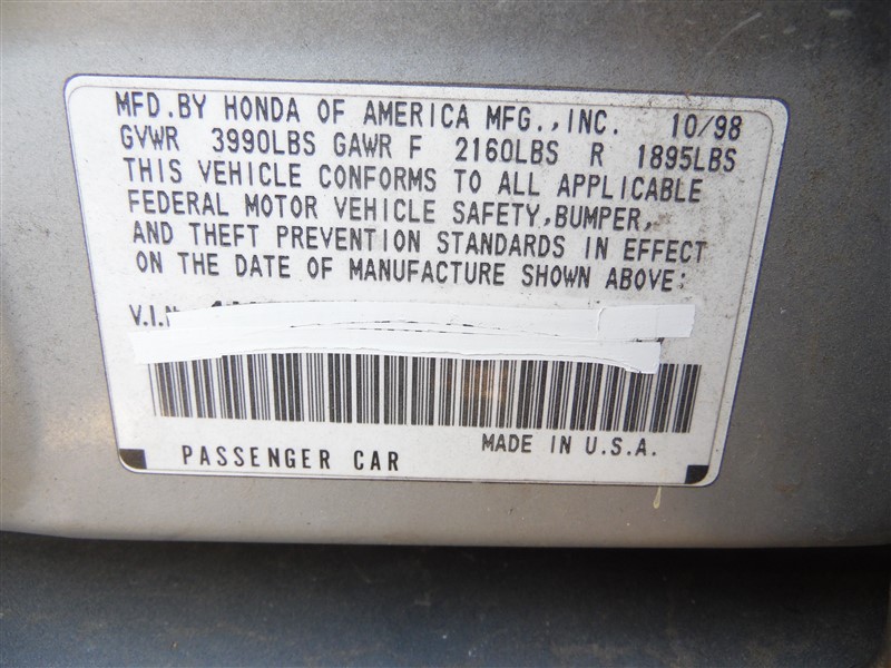 1999 HONDA ACCORD 4DOOR LX SILVER 2.3 AT A20257