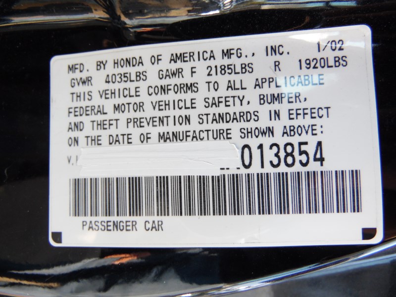 2002 HONDA ACCORD EX BLACK CPE 2.3L VTEC AT A199312002 HONDA ACCORD EX BLACK CPE 2.3L VTEC AT A19931