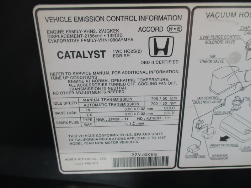 1997 HONDA ACCORD EX GREEN 4DR 2.2L VTEC AT A163711997 HONDA ACCORD EX GREEN 4DR 2.2L VTEC AT A16371