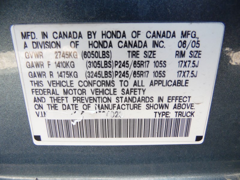 Make: HONDA RIDGELINE RTL Interior Color: GRAY