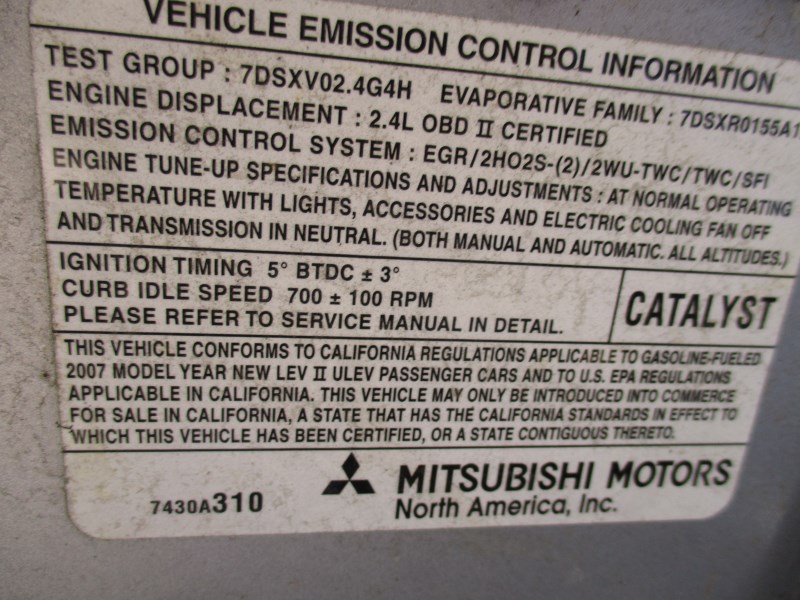 2007 MITSUBISHI ECLIPSE GS SILVER 2DR 2.4L AT 1537312007 MITSUBISHI ECLIPSE GS SILVER 2DR 2.4L AT 153731