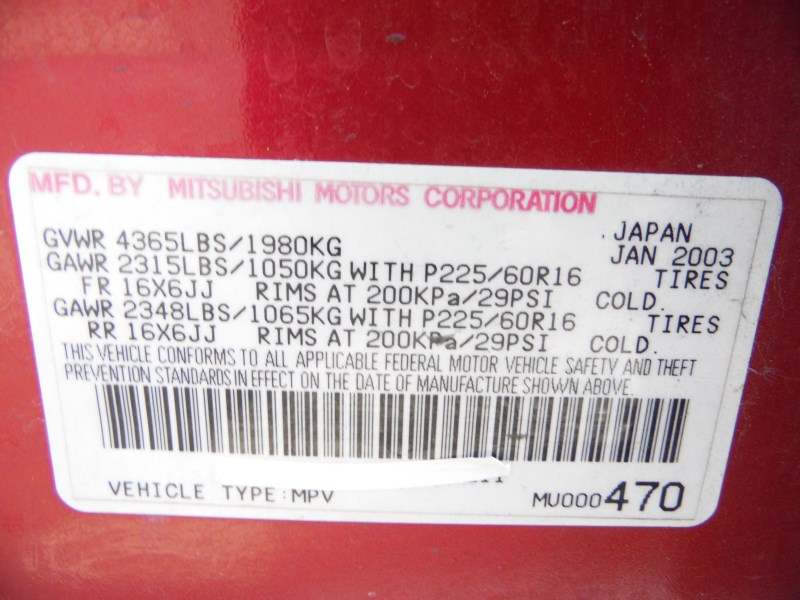 2003 MITSUBISHI OUTLANDER LS BURGUNDY 2.4L AT 4WD 1838542003 MITSUBISHI OUTLANDER LS BURGUNDY 2.4L AT 4WD 183854