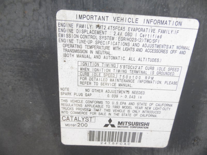 1993 MITSUBISHI PICK UP GRAY STD CAB 2.4L MT 2WD 1838681993 MITSUBISHI PICK UP GRAY STD CAB 2.4L MT 2WD 183868