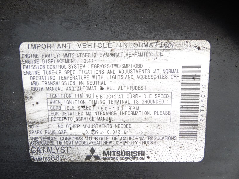 1991 MITSUBISHI PICK UP GRAY STD CAB 2.4L AT 2WD 1838761991 MITSUBISHI PICK UP GRAY STD CAB 2.4L AT 2WD 183876