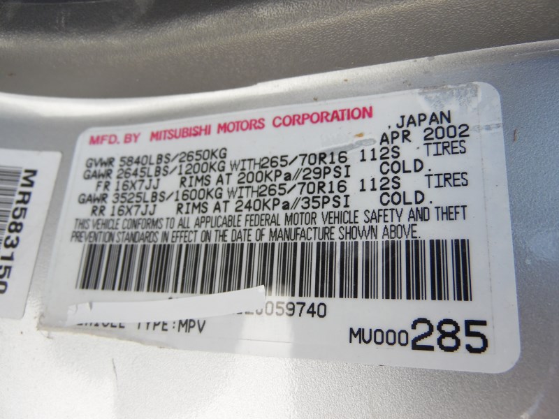 Make: MITSUBISHI MONTERO LIMITED Interior Color: GRAY