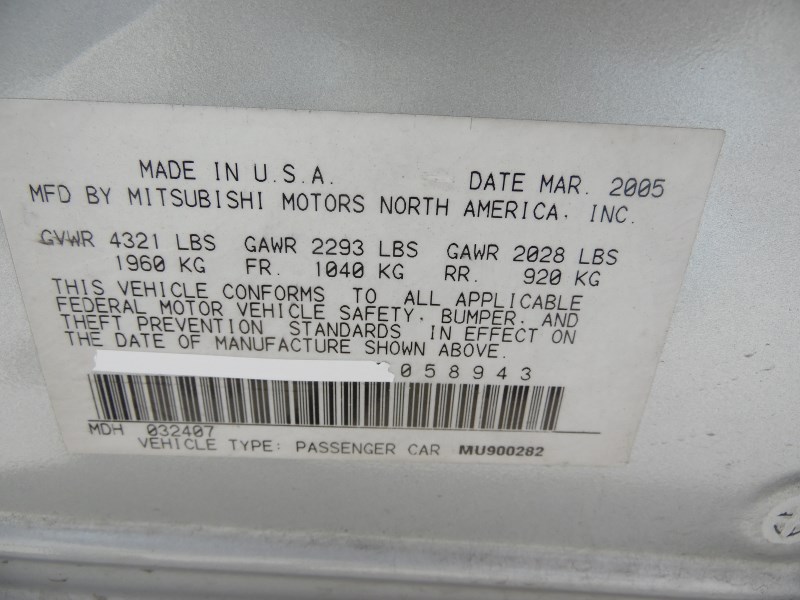 2005 MITSUBISHI GALANT 4DR ES SILVER AT 2.4 1939072005 MITSUBISHI GALANT 4DR ES SILVER AT 2.4 193907