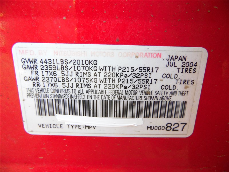 2005 MITSUBISHI OUTLANDER LIMITED RED 2.4 AT 4WD 2039532005 MITSUBISHI OUTLANDER LIMITED RED 2.4 AT 4WD 203953