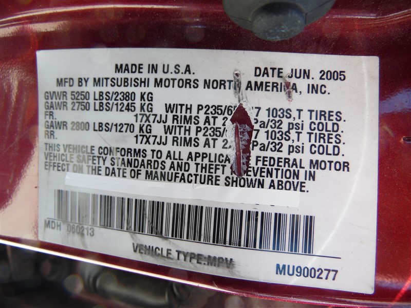 Make: MITSUBISHI ENDEAVOR LIMITED Interior Color: GRAY